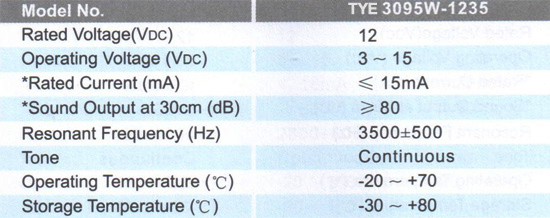 TYE3095W壓電蜂鳴器